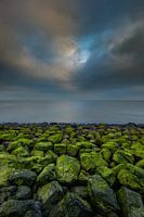 Na een grijze dag op Texel, kwam er ineens wat licht door de bewolking. Toen meteen de auto ingesprongen om naar de dijk te gaan waar deze stenen lagen die volledig groen waren geworden. Een mooi contrast geworden.