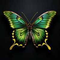 Prachtige groen gele fantasie vlinder op een donkere achtergrond. Een prachtige kleurrijk werk dat zeker in heel groot formaat een echte blikvanger is in je interieur. Ook heel goed te combineren met andere vlinders in deze mooie serie.