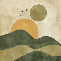 Koop dit landschapskunstwerk Groene zonsopgang met vogels - Minimalistische landschapskunst van Poster Art Shop als print op canvas, aluminium dibond, (ingelijste) fotoprint, behang en ArtFrame. Voor jou op maat geprint in Fine-Art kwaliteit.