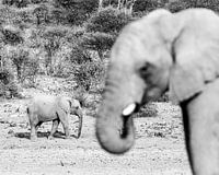 Over ‘Grote en kleine olifant in zwart wit | Wildlife Natuurfotografie Afrika’ van Monique Tekstra-van Lochem