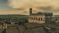 Uitzicht over de daken van Gubbio met prominent in beeld het 'Palazzo dei Consoli'