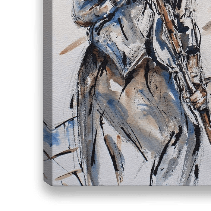 Aquarel/ Oost Indische inkt / Portret / Vrouw / Bezem/ Vegen /Schoonmaken / Haal de bezem erdoor/ Figuratieve kunst / Schilderkunst / Tekenkunst / Zwart / Bruin / Blauw/