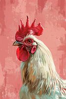 Portret van een haan in de stijl van een illustratie met een abstracte achtergrond.