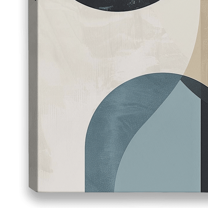 Geometrische basisvormen: Emoties streek voor streek. In dit werk vormen cirkels en lijnen samen een compositie die zowel structuur als beweging uitdrukt. De zwarte lijnen lopen elegant door de blauwe en beige oppervlakken en creëren diepte en dynamiek. Deze abstracte kunst belichaamt de perfecte balans tussen orde en creatieve vrijheid…