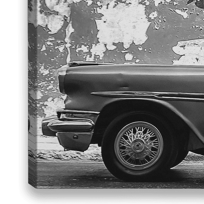 De vervallen klassieke Amerikaanse auto is afkomstig uit een tijd die stil is blijven staan na de revolutie door de helden op de achtergrond