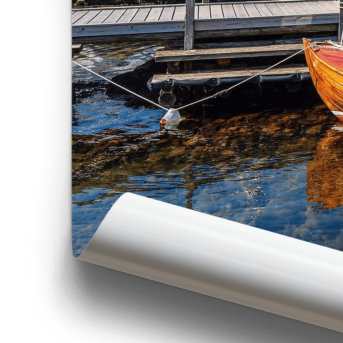 Koop de foto Haven met boot op het eiland Merdø in Noorwegen van Rico Ködder op canvas, aluminium dibond, (ingelijste) fotoprint, behang en ArtFrame, op maat geprint in Fine-Art kwaliteit.