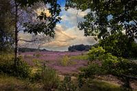 Mooie bloeiende paarse heidevelden in de provincie Friesland.