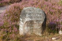 Heidelandschap met steen als wegwijzer, Wilseder Berg, wilsede, Natuurpark Lüneburger Heide, Nedersa