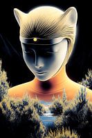 Aanschouw "Celestial Guardian", een etherisch meesterwerk dat goddelijke elegantie combineert met kosmisch mysterie. Dit lichtgevende wezen met katachtige trekken en een stralende krans staat als een bewaker tussen de werelden, waar mythologie en het onbekende zich met elkaar verweven. Haar serene uitdrukking, die oprijst uit een…