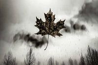 Over ‘Herfstblad in abstract landschap’ van Art & Soul Creations