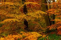 Oranje,Geel en vele andere mooie herfstkleuren in deze foto van een bos..ideaal behang .