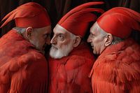 Deze AI-gecreëerde portretten dompelen de kijker onder in een wereld van mysterie, macht en verborgen betekenissen. In het Vaticaan komen kardinalen bijeen, gehuld in rijke rode gewaden, die niet alleen hun status symboliseren, maar ook de onderliggende sfeer van intrige versterken. De intense, diepe tinten rood overheersen het…