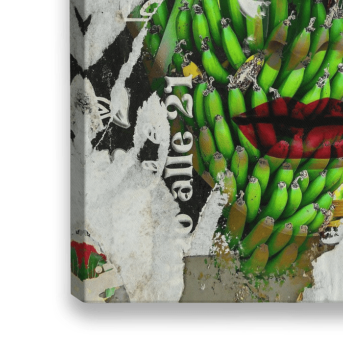 Koop dit abstracte kunstwerk Het gezicht en de groene bananen van Gabi Hampe op canvas, aluminium dibond, (ingelijste) fotoprint, behang en ArtFrame, op maat geprint in Fine-Art kwaliteit.