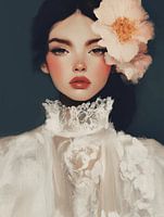 Het meisje met de kanten top en bloem in het haar, modern portret met een knipoog naar de romantiek. Een bijzondere blikvanger voor je interieur! Kies zelf het formaat en materiaal bij dit werk en maak het helemaal naar wens.