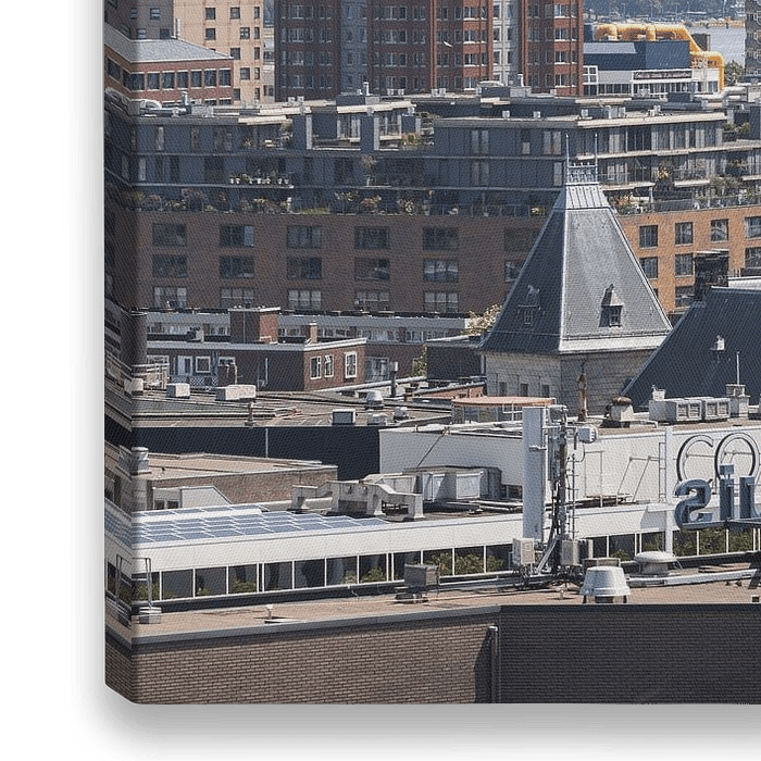 Het uitzicht op de binnenstad van Rotterdam met diverse bekende gebouwen. Dit werk is onderdeel van de fotocollectie van MS Fotografie. Klik rechts op "Alle werken" om meer werken uit de collectie te zien.