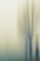 Meervoudige belichting van 3 bomen in de dichte mist. De voorste en de achterste bomen zijn kort gesnoeid. Door de beweging tijdens de opname bekom je een artistiek en kunstig effect.