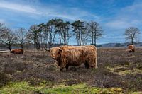 Highlander runderen grazend op de heidevelden in ons mooie Drente.