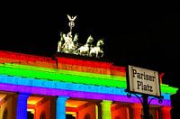 De Brandenburger Tor wordt in een bijzonder licht gezet ter gelegenheid van een Berlijns lichtfeest.