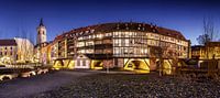 Over ‘Historische Krämerbrücke in Erfurt op het blauwe uur in de avond’ van Frank Herrmann