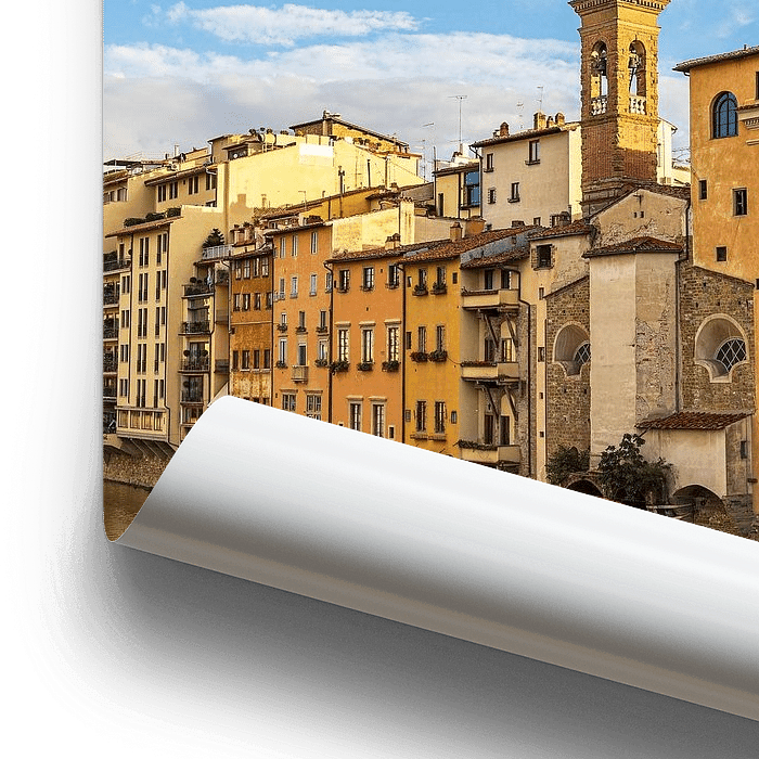 Koop de foto Historische gebouwen aan de rivier de Arno in Florence, Italië van Rico Ködder op canvas, aluminium dibond, (ingelijste) fotoprint, behang en ArtFrame, op maat geprint in Fine-Art kwaliteit.