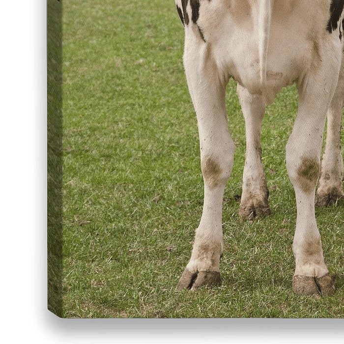Een Hollandse koe staand in een weiland en in een verticale foto