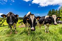 Als je rondrijdt op de Azoren kom je zeker weten zwartbonte koeien tegen. Er grazen zo'n 200.000 exemplaren op de prachtige groene grasvelden.