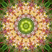Op een mooie zomerdag maakte ik, in de buurt van Leiden, een foto van de bloemen van een kamperfoeliestruik langs de kant van de weg. Door die foto in twaalf transparante lagen over elkaar te leggen, elke laag dertig graden gedraaid ten opzichte van de vorige, ontstond dit mandala-achtige beeld. In het Engels zeggen ze overigens…