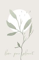 Moderne minimalistische graphics met een milieubewust, duurzaam statement. LOVE YOUR PLANET. HOU VAN JE PLANEET.