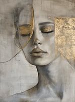 How fragile we are. Modern en abstract portret van een jonge vrouw met gouden accenten. Kies zelf het formaat en materiaal bij dit werk. Moderne en abstract kunst, contemporary art.