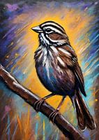 Dit abstracte acrylschilderij vangt de charme van de huismus door middel van schilderachtige streken die details vervagen tot ritme en sfeer. De vogel verschijnt als een impressie binnen textuurlagen, zijn aanwezigheid subtiel maar levendig, en suggereert de vluchtige energie van de alledaagse natuur. Wervelingen en bewegingen over het…