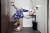 Herinner jij je nog hoe spannend het voor kinderen kan zijn om voor het eerst naar de grote-mensen-WC te gaan? Deze humoristische fotomanipulatie vangt precies dat gevoel, met een knipoog naar de onschuldige angsten van een kind. De foto toont een creatieve weergave van de beleving van een jong meisje dat bang was om in het toilet te…