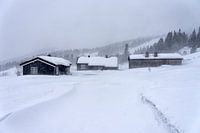 Koop de foto Hutten in sneeuwval van Angelika Stern op canvas, aluminium dibond, (ingelijste) fotoprint, behang en ArtFrame, op maat geprint in Fine-Art kwaliteit.