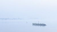 Een koude mistige ochtend aan het Leekstermeer in de provincie Drenthe. Enkele eendjes in het water, een enkele meeuw op een paal... de natuur is nog niet wakker.