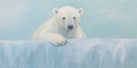 Een kleurrijk digitaal schilderij van een IJsbeer op een ijsschots Het werk geeft een dromerige en klassieke uitstraling aan uw interieur!