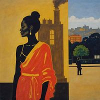In dit suggestieve schilderij vangt de kunstenaar de essentie van veerkracht temidden van de botsing tussen traditie en vooruitgang. Een Afrikaanse vrouw staat tegen een levendige gele muur, haar vorm benadrukt in contrast met de gedempte landelijke en industriële landschappen die haar flankeren. Deze gele muur dient als schild en…
