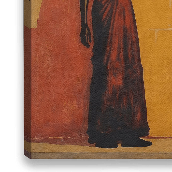 In dit suggestieve schilderij heb ik geprobeerd de delicate balans van identiteit en omstandigheden vast te leggen. Een Afrikaanse vrouw staat tegen een levendige gele muur, haar aanwezigheid is zowel prominent als raadselachtig. De schaduw die ze werpt weerspiegelt haar vorm, voegt diepte toe aan haar karakter en hult haar ware…