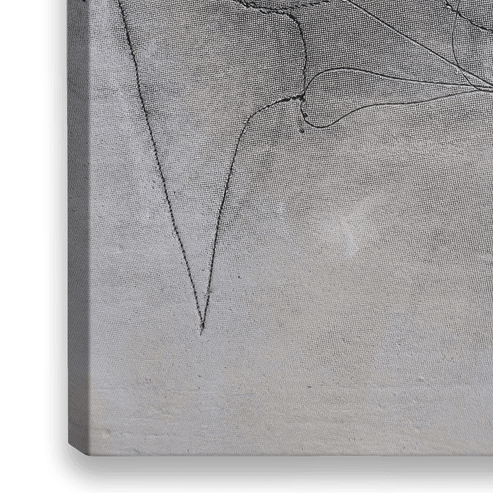 Een lijntekening van een textiel werk omgezet in keramiek.