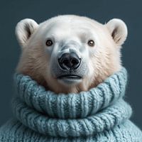 Koop dit Popart kunstwerk Ijsbeer gekleed voor de winter van Ton Kuijpers op canvas, aluminium dibond, (ingelijste) fotoprint, behang en ArtFrame, op maat geprint in Fine-Art kwaliteit.