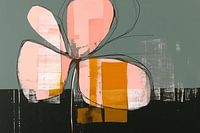 Illustratie van een abstracte bloem in pastelkleuren. De kleur zwart is toegevoegd voor het nodig contrast. Kies zelf het formaat en materiaal bij dit werk en maak het helemaal passend voor jouw interieur.