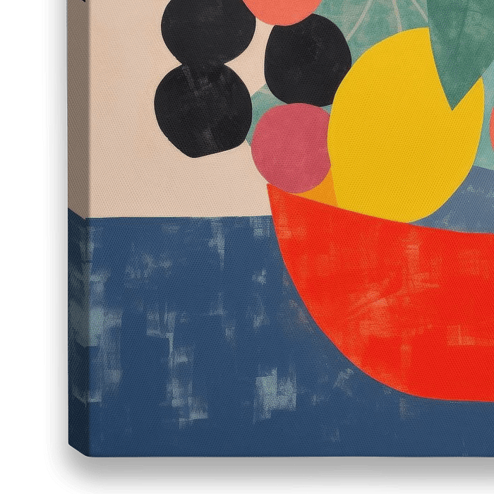 Illustratie "Kleurrijke fruitmand". Dit werk is een echte blikvanger aan je wand. Speels en erg leuk in de keuken! Mooi in alle formaten en op elk materiaal.