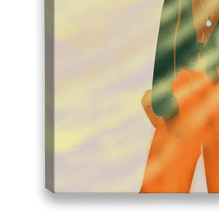 Vrouw / Portret / Abstracte kunst / Figuratieve kunst / Zon / Zomer / Oranje / Goud / Groen / Illustratie/ Mode / Mode illustratie / Fashion /