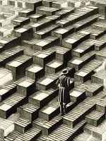 Terwijl ik mij een weg baan door de schaduwrijke geometrie van dit doolhof, voel ik de aanwezigheid van de grootmeester Escher. Zijn invloed is onmiskenbaar, de manier waarop de lichtvlakken spelen met de duisternis, hoe elk blok zijn eigen verhaal vertelt. Deze creatie is een ode aan zijn visie, een moderne interpretatie van zijn onuitwisbare stempel op de wereld van kunst en wiskunde.