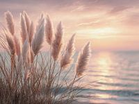 Als omarmd door het licht staan de vederlichte sprietjes pampagras aan de oever, ondergedompeld in een droomachtig kleurenspel van roségoud, lavendel en crème. De zon zakt zachtjes in het glinsterende water, dat als zijde aan de horizon verdwijnt. Alles in dit moment fluistert: rust, ruimte, lichtheid. Deze foto is als een stille…