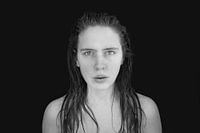 Koop dit portret Ingetogen Zelfportret met Zwarte Achtergrond - Authentieke en Pure Kunst van Elianne van Turennout op canvas, aluminium dibond, (ingelijste) fotoprint, behang en ArtFrame, op maat geprint in Fine-Art kwaliteit.