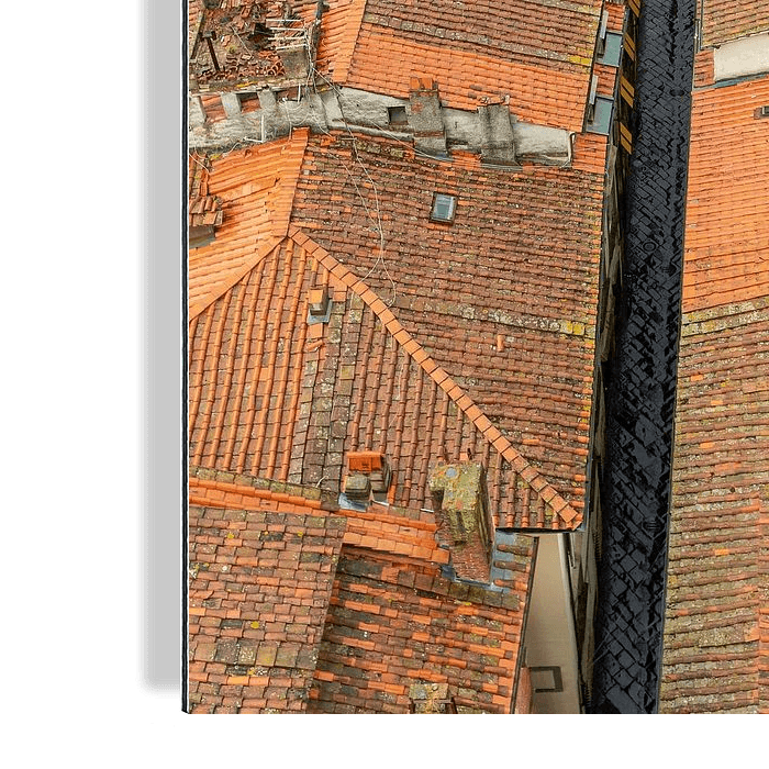 Zicht op de prachtige gedekte Italiaanse daken vanaf een oude kerktoren.