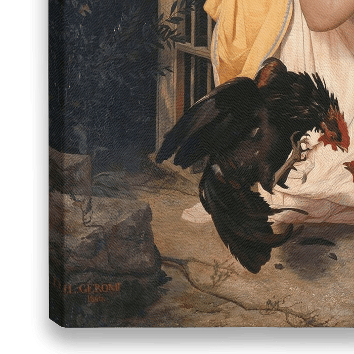 Koop Jonge Grieken die een hanengevecht bijwonen, Jean-Léon Gérôme als reproductie op canvas, aluminium dibond, (ingelijste) fotoprint, behang en ArtFrame, op maat geprint in Fine-Art kwaliteit.