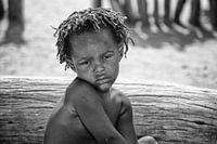Kleine jongen met dreadlocks van het Damaravolk in zwart-wit...