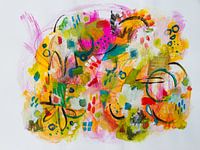 Puur fun! Dit speelse schilderij is een rechtstreekse vertaling van gevoel op een wit vlak. Niet denken, maar je penseel laten bewegen in vormen, kleuren, vibes.