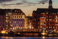 Koop de foto Jungefernstieg met kerstverlichting in de schemering, Hamburg, Duitsland, Europa van Torsten Krüger als print op canvas, aluminium dibond, (ingelijste) fotoprint, behang en ArtFrame. Voor jou op maat geprint in Fine-Art kwaliteit.