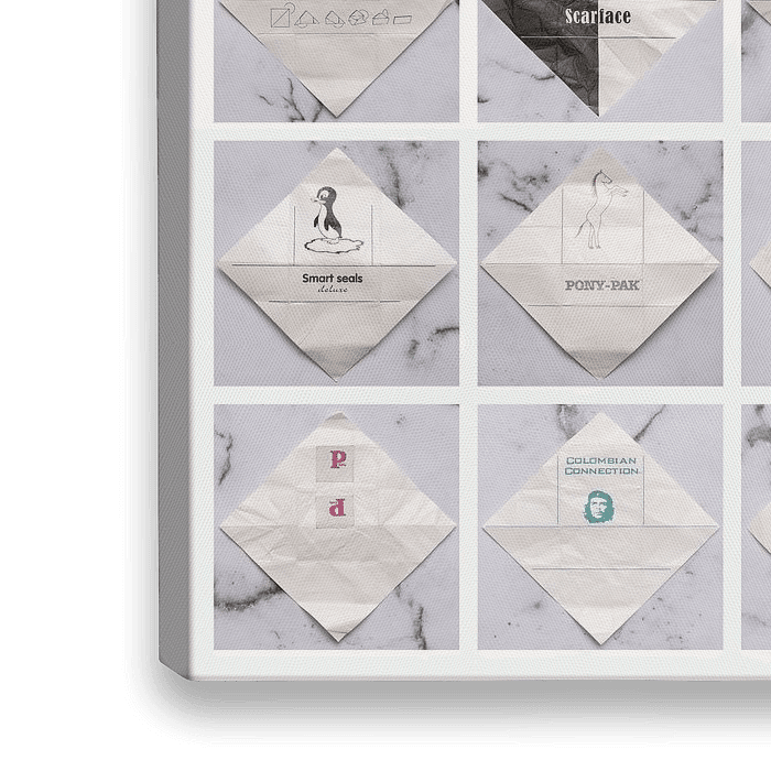 Koop dit abstracte kunstwerk Kabouterpost; Blad met 20 ontwerpen van Floris Kok op canvas, aluminium dibond, (ingelijste) fotoprint, behang en ArtFrame, op maat geprint in Fine-Art kwaliteit.